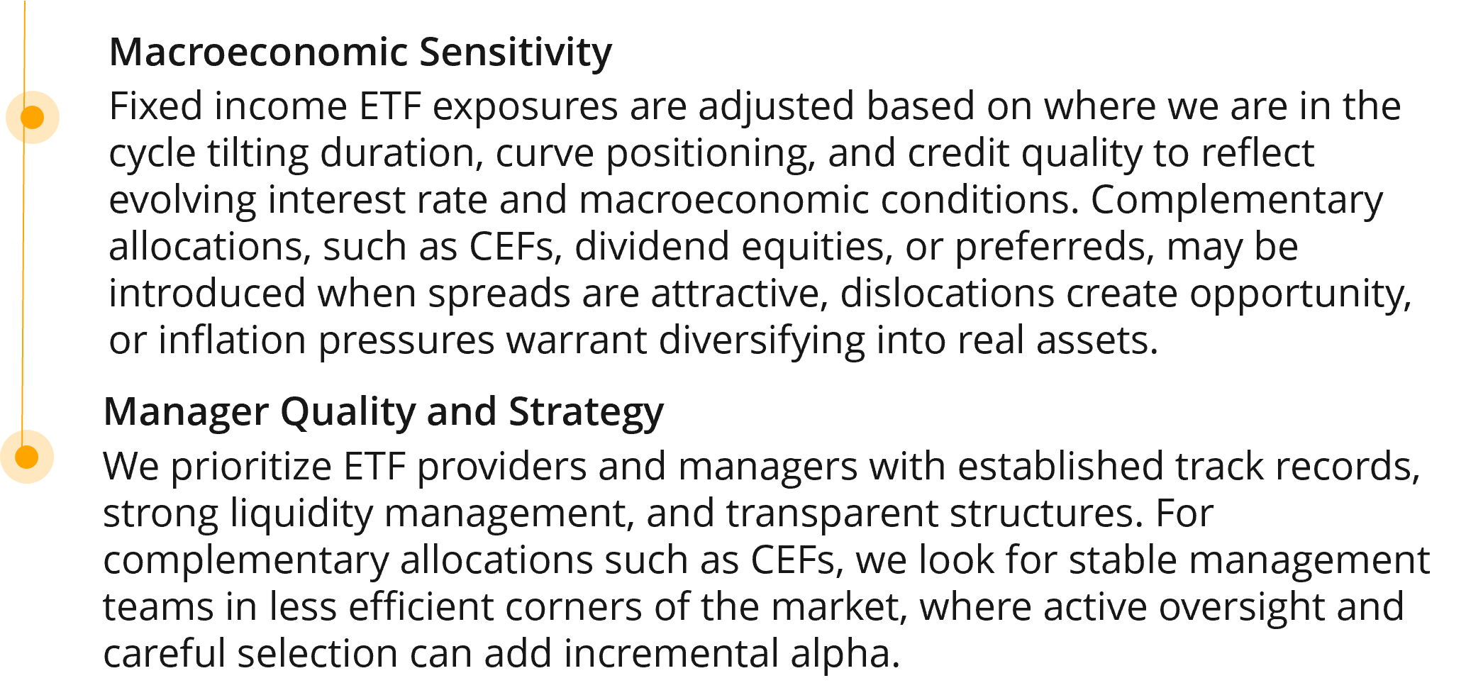 Our rotating core complements are tactical, designed to expand yield potential and portfolio resilience
